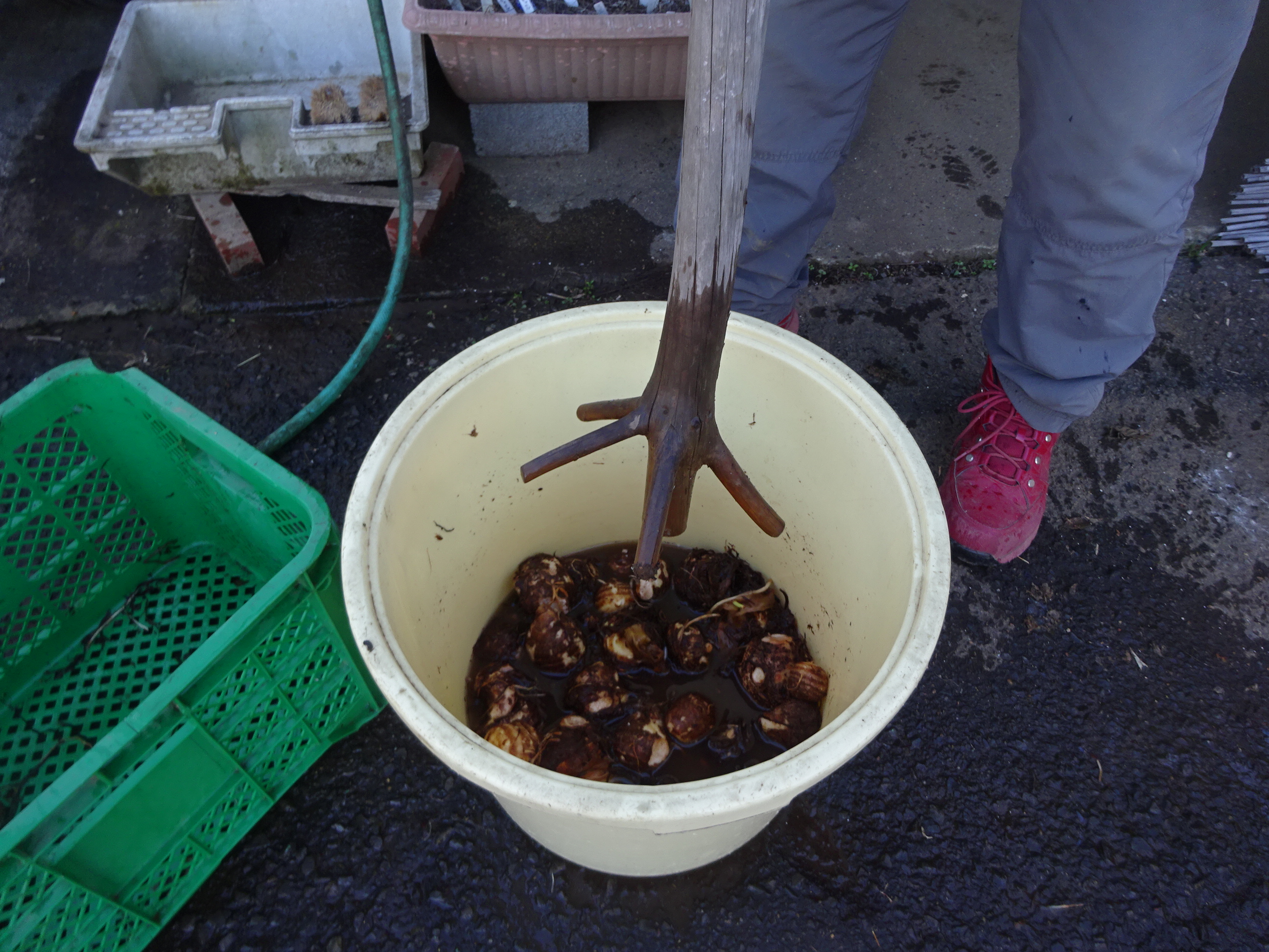 泥だけではなく皮もある程度取り除くことができる「古代」?からの民藝農機具です。そういえばそろそろ里芋・生姜などの根菜を植え付ける時期ですね。耕作の目印、木蓮の花が咲き始めました。